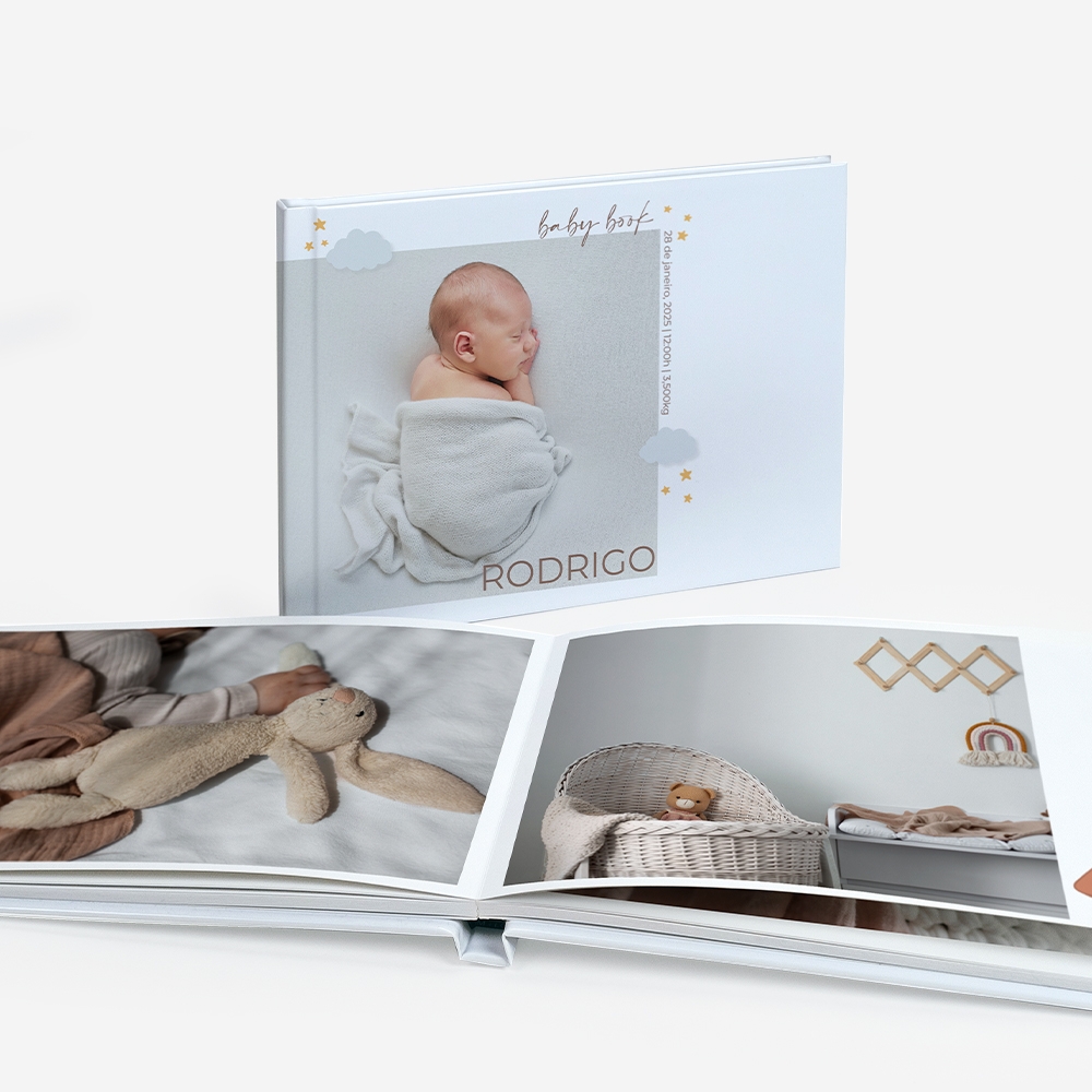 Porque cada etapa é única e não volta atrás. Um álbum de bebé transforma o telemóvel cheio de fotos em algo que se vê com calma, sempre com um sorriso. É uma forma doce de contar (e recontar) o início de uma história incrível.