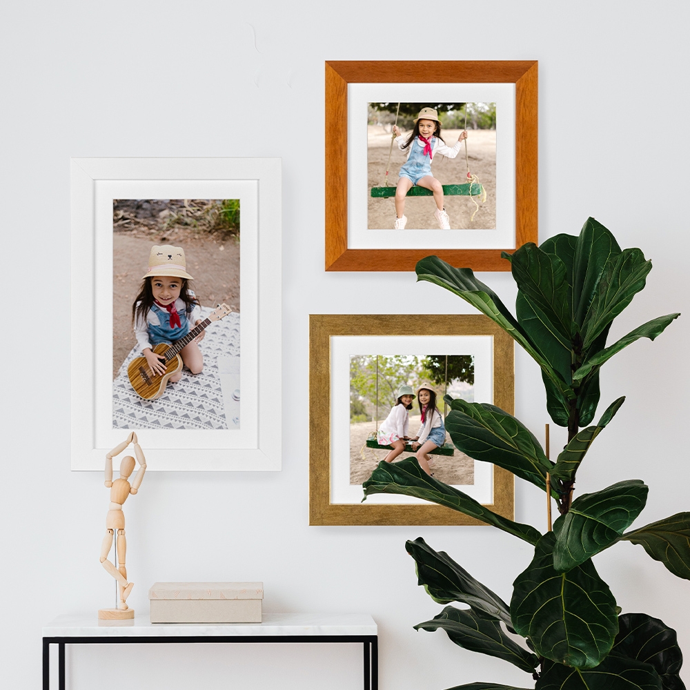 As molduras até 15x20 cm incluem suporte para colocação em mesa. A partir de 20x30 cm, são projetadas para serem penduradas na parede, tornando-se o destaque perfeito para qualquer ambiente.