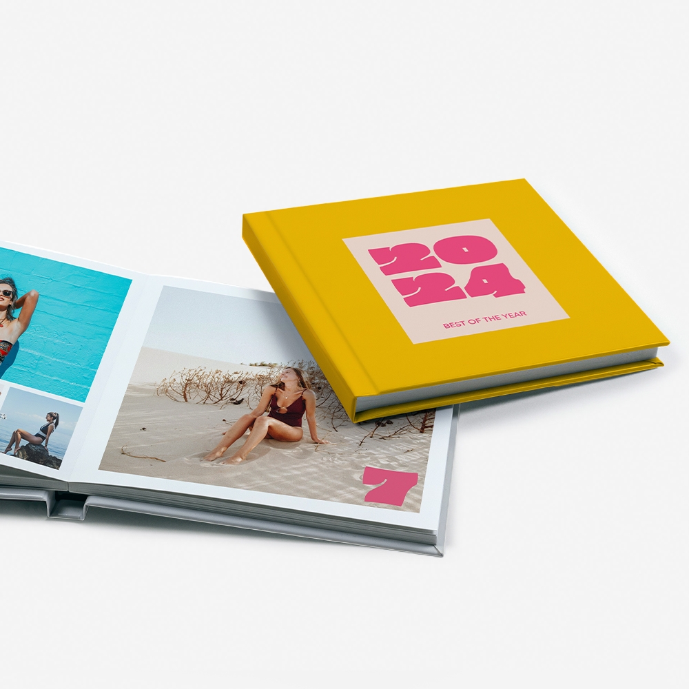 A capa rígida em cartão duro oferece proteção adicional e um acabamento elegante ao teu álbum.