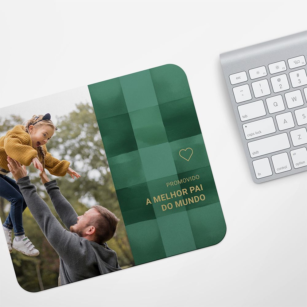 Tapete de Rato: Falar em prendas originais para o pai é levar a criatividade ao máximo e presentea-lo com um tapete de rato, ideal para decorar o escritório e ter sempre por perto, aquela fotografia ou mensagem especial.